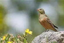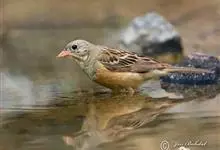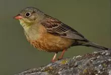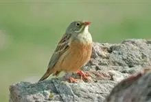圃鹀:体重20-25克,体长150-175毫米,属小型鸣禽。喙为圆锥形,与雀科的鸟类相比较为细弱,上下喙边缘不紧密切合而微向内弯,因而切合线中略有缝隙;体羽似麻雀,头上、后颈及胸橄榄绿色,翕呈栗褐色…全部>>