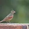 凤头鹀:属小型鸣禽,体重21-31克,体长134-175毫米。以头顶的细长羽冠为特征,雄鸟全身几乎均为黑色具蓝色光泽,两翅和尾以及尾上覆羽栗红色。雌鸟具短的褐色羽冠,上体暗橄榄褐色,…全部>>