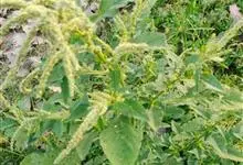 反枝苋是苋科苋属的一年生草本植物。株高达1米;茎密被柔毛;叶菱状卵形或椭圆状卵形,先端锐尖或尖凹,两面及边缘被柔毛,下面毛较密;穗状圆锥花序,顶生花穗较侧生者长;花被片长圆形或长圆状倒卵形,…全部>>