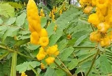 翅荚决明 Roxb.)是豆科决明属灌木植物,高3米。羽状复叶,在叶柄和叶轴上有窄翅;小叶倒卵状长圆形,先端圆钝,基部斜截形;总状花序顶生和腋生;荚果带形,…全部>>