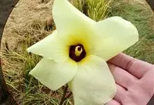 咖啡黄葵 Moench)亦称黄秋葵,是锦葵科一年生草本植物。茎圆柱形,疏生散刺。叶掌状,裂片阔至狭,托叶线形,被疏硬毛。花单生于叶腋间,花梗疏被糙硬毛,小苞片钟形;花萼钟形,密被星状短绒毛;花黄色,…全部>>