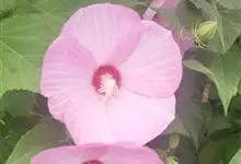 芙蓉葵是锦葵科木槿属植物,又名草芙蓉、大花秋葵,原产于北美。落叶灌木状。叶大、广卵形,叶柄、叶背密生灰色星状毛。花大,单生于叶腋,有白、粉、红、紫等色。喜阳、略耐阴,宜温暖湿润气候,忌干旱,耐水湿,…全部>>