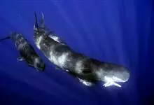 抹香鲸是鲸目、抹香鲸科的海洋哺乳动物。体长可达18米,体重超过50吨,是体型最大的齿鲸,头部可占身体的1/3。头部巨大,下颌较小,仅下颌有牙齿。无背鳍;潜水能力极强,是潜水最深,潜水时间最长的哺乳动物。…全部>>