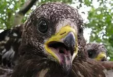 白肩雕:又名御雕,是大型猛禽。体长73-84厘米。体羽黑褐色,头和颈较淡,肩部有明显的白斑,在黑褐色的体羽上极为醒目,很远即可看见,这是区别其他雕的主要特征。滑翔时两翅平直,滑翔和翱翔时两翅亦不上举…全部>>