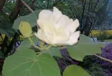 木芙蓉,锦葵科木槿属落叶灌木或小乔木。小枝上有细绒毛;叶片为卵状心形,托叶为披针形,常早落;花单生,花萼为钟形,花冠初为白色或淡红色,后逐渐变为深红色;果实为扁球形,有淡黄色的毛附着。花期8到10月。…全部>>
