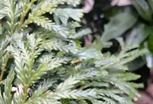 福建柏是柏科福建柏属常绿乔木,高可达17米。树皮紫褐色,平滑;小枝扁平,排成一平面,二、三年生枝褐色,光滑,圆柱形;鳞叶2对交叉对生,成节状。雄球花近球形,长约4毫米。球果近球形,…全部>>