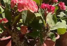 虎刺梅:别称铁海棠,是蔓生灌木植物。茎多分枝,长60-100厘米,直径5-10毫米,具纵棱,密生硬而尖的锥状刺,刺长1-1.5厘米,直径0.5-1.0 毫米,常呈3-5列排列于棱脊上,呈旋转。叶互生…全部>>