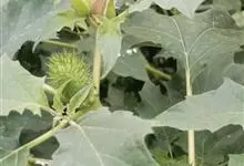 曼陀罗,茄科曼陀罗属一年生大型草本植物,全株光滑。有臭气;叶呈广卯形,边缘具不规则波状浅齿裂;花单生于枝杖间或叶腋,直立,有短梗;花萼是筒状裂片三角形,颜色为白色或淡紫色;果实为蒴果卵状,…全部>>