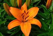 青岛百合是百合科百合属的多年生草本植物;鳞茎近球形;鳞片披针形,白色,无节;叶轮生,矩圆状倒披针形、倒披针形至椭圆形,先端急尖,基部宽楔形,具短柄,两面无毛;苞片叶状,披针形;花橙黄色或橙红色,…全部>>