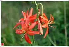 山丹是百合科百合属的多年生草本植物。鳞茎卵形或圆锥形,鳞片长圆形或长卵形,白色;叶散生茎中部,线形,边缘有乳头状突起;花单生或数朵成总状花序,花鲜红色,常无斑点,花被片反卷,…全部>>