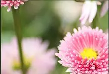 雏菊,菊科雏菊属的多年生或一年生葶状草本植物。其株高约10厘米,叶子呈匙形,顶端是圆的,上半部有疏钝齿或波状齿;总花苞呈半球形或宽钟形,舌状花有一层,管状花较多;瘦果是倒卵形的,扁平,有边脉,…全部>>