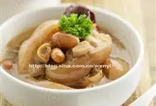 花生猪蹄汤是用花生、猪蹄制作的一道家常菜。 花生含有维生素E和一定量的锌,能增强记忆,抗老化,延缓脑功能衰退,滋润皮肤。全部>>