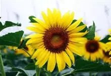 向日葵:是桔梗目、菊科、向日葵属的植物。因花序随太阳转动而得名。是一年生高大草本植物。茎粗壮,高1-3米,不分枝或有时上部分枝,被白色粗硬毛。叶互生,卵状心形或卵形,顶端急尖或渐尖,基生3出脉,…全部>>