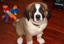 圣伯纳犬,别名巴里汉德,属于大型工作犬,肩高约65~90厘米,体重约50~90千克。圣伯纳犬身体强壮,被毛红褐色和白色相间,头圆而宽大。颈部强壮,胸宽深,背直。前肢长直,腕关节略前倾,后肢腿骨粗壮,…全部>>