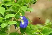 蝶豆是豆科蝶豆属植物。攀援状草质藤本。茎、小枝细弱,被脱落性贴伏短柔毛。叶长2.5-5厘米;托叶小,线形,长2-5毫米;叶柄长1.5-3厘米。花大,单朵腋生;苞片2,披针形。荚果长5-11厘米,…全部>>