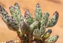 褐斑伽蓝是景天科伽蓝菜属的多年生多肉类植物,茎直立,多分枝,叶生于枝上,肉质叶片匙形,上面密被白色绒毛,下部全缘,叶缘上部有缺刻,缺刻处有深褐或棕色斑块。褐斑伽蓝原产非洲的马达加斯加岛。…全部>>