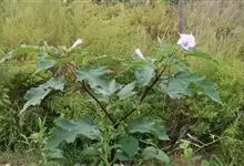 曼陀罗,茄科曼陀罗属一年生大型草本植物,全株光滑。有臭气;叶呈广卯形,边缘具不规则波状浅齿裂;花单生于枝杖间或叶腋,直立,有短梗;花萼是筒状裂片三角形,颜色为白色或淡紫色;果实为蒴果卵状,…全部>>