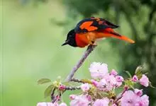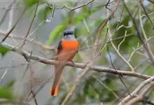 灰喉山椒鸟:共有8个亚种。体长18-22厘米。雄鸟头部和背亮黑色,腰、尾上覆羽和下体朱红色,翅黑色具一大一小的两道朱红色翼斑。中央尾羽黑色,外侧尾羽基部黑色,端部红色。…全部>>