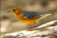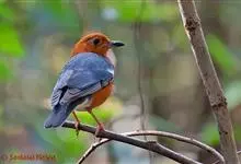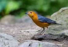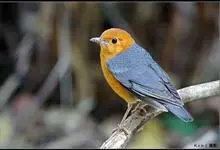 橙头地鸫是鸫科、地鸫属中型鸟类,体长18-22厘米。整个头、颈和下体橙栗色,其余上体包括两翅和尾蓝灰色或橄榄灰色,翅上多具白色翅斑。虹膜褐色或棕褐色,嘴黑褐色或黑色,脚橙黄色或肉黄色。特征极明显。…全部>>