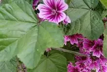 锦葵:二年生或多年生直立草本,高50-90厘米,分枝多,疏被粗毛。叶圆心形或肾形,具5-7圆齿状钝裂片,两面均无毛或仅脉上疏被短糙伏毛。花3-11朵簇生,小苞片3,长圆形疏被柔毛;花紫红色或白色,…全部>>