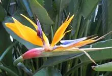 鹤望兰,别名天堂鸟,为鹤望兰科鹤望兰属的一种多年生草本植物;无木质树干;花序生于与叶柄近等长或稍短的花序梗上,佛焰苞1;花较小,萼片橙黄色,长7.5-10厘米,箭头状花瓣基部具耳状裂片,…全部>>