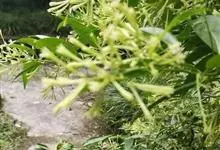 夜香树是茄科、夜香树属直立或近攀援状灌木。枝条细长而下垂。叶有短柄,叶片矩圆状卵形或矩圆状披针形,全缘,顶端渐尖,基部近圆形或宽楔形,两面秃净而发亮,有6-7对侧脉。伞房式聚伞花序,腋生或顶生,…全部>>