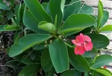 铁海棠为大戟科大戟属蔓生灌木植物;茎多分枝,具纵棱,呈旋转状;叶互生,通常集中于嫩枝上;每个花序基部边缘具微小的红色尖头;苞叶先端圆且具小尖头,无柄,上面鲜红色,下面淡红色;苞片丝状;子房光滑无毛,…全部>>