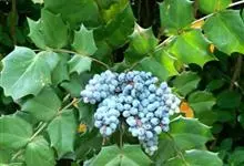 阔叶十大功劳 Carr. )是小檗科,十大功劳属常绿灌木或小乔木,高可达2米。叶长圆形,上面深绿色,叶脉显著,背面淡黄绿色,网脉隆起,小叶无柄,基部一对小叶倒卵状长圆形,总状花序簇生,…全部>>