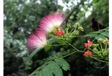 合欢,又名马缨花、绒花树、夜合合等,为豆科合欢属的一种落叶乔木。合欢的树高可达16米,人工特别养护的可达30米,树冠开展;二回羽状复叶,…全部>>