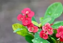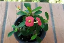 铁海棠为大戟科大戟属蔓生灌木植物;茎多分枝,具纵棱,呈旋转状;叶互生,通常集中于嫩枝上;每个花序基部边缘具微小的红色尖头;苞叶先端圆且具小尖头,无柄,上面鲜红色,下面淡红色;苞片丝状;子房光滑无毛,…全部>>