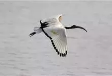 圣鹮头、颈黑色,身体白色,初级和次级飞羽尖端黑色。喙长且厚、黑色下弯,跗蹠与趾黑色。下背部有大量黑色纱状装饰羽,翼下裸露皮肤红色,体侧有时带黄褐色。亚成鸟的头、颈有羽毛,斑驳黑色带有白色纵纹,…全部>>