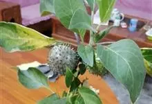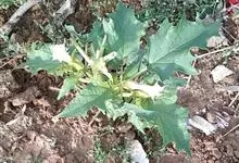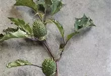 曼陀罗,茄科曼陀罗属一年生大型草本植物,全株光滑。有臭气;叶呈广卯形,边缘具不规则波状浅齿裂;花单生于枝杖间或叶腋,直立,有短梗;花萼是筒状裂片三角形,颜色为白色或淡紫色;果实为蒴果卵状,…全部>>