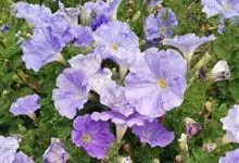 碧冬茄是茄科矮牵牛属一年生草本植物,是杂交种。植株高达60厘米;茎在地面匍匐生长,表面有一层粘质柔毛;叶卵形,先端渐尖,具有较短的叶柄或几乎没有叶柄;花单独生长于叶柄与茎的连接处;花冠白色或紫堇色,…全部>>