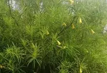 黄花夹竹桃K. Schum.),又名“酒杯花”“柳木子”“黄花状元竹”,是夹竹桃科,黄花夹竹桃属下的常绿乔木植物。高达5m,全株无毛,树皮棕褐色;叶互生,近革质,线形或线状披针形;花大,黄色,具香味,…全部>>