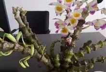 肿节石斛,是兰科石斛属多年生草本植物。肿节石斛茎斜立或下垂,肉质,圆柱形;叶纸质,长圆形;花序生于已落叶老茎上部,花白色,上部紫红色,有香气;花瓣宽长圆形,唇瓣白色,中部以下金黄色,上部紫红色,…全部>>