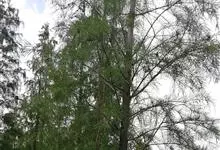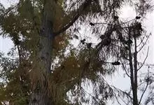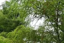 落羽杉 Rich.),杉科落羽杉属木本植物。树干尖削度大,基部通常膨大,具膝状呼吸根,树皮棕色,裂成长条片;一年生小枝褐色,侧生短枝;叶线形;球果具短柄,熟时淡褐黄色,被白粉;花期3月;球果10月成熟。…全部>>