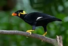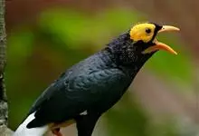 金冠树八哥为椋鸟科树八哥属的鸟类。体长约23厘米,闪辉黑色。特征为具翼斑及颏黄色,脸颊裸露皮肤粉黄色。分布于印度、缅甸、泰国以及中国大陆的云南、广东等地。…全部>>