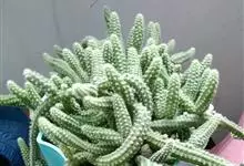 鼠尾掌 Lem.)是仙人掌科鼠尾掌属植物,变态茎细长,匍匐,在原产地长可达2米,具气生根。茎粗1.5-2厘米。幼茎色绿,以后变灰。具浅棱10-14,刺座小。辐射刺10-20,针形。花期4-5月,…全部>>