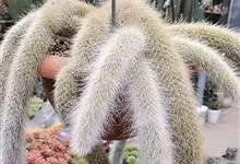 猴尾柱 Mottram),为仙人掌科管花柱属植物,原产玻利维亚的圣克鲁斯省,生长在陡峭的砂岩上面。猴尾柱外形奇特,细长的白毛柱和猴子的尾巴神似,并且夏秋季开花不断,…全部>>