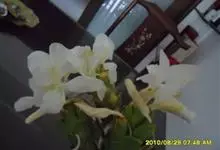 姜花又名野姜花。是姜科姜花属的多年生草本植物,茎高1-2米;叶片长圆状披针形或披针形,叶面光滑,叶背被短柔毛;穗状花序顶生,椭圆形,花芬芳,白色;蒴果卵状三棱形,微黄绿色;种子鲜红色,具橘红色的假种皮。…全部>>