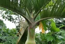 酒瓶椰为棕榈科椰子属植物。干高1-3米,径35-70厘米;茎干下部肥大,形似酒瓶,环节明显;羽状复叶,拱形生长,略呈旋转;小叶披针形,叶面略带红色;花序由冠茎基部长出,分枝下垂;果实椭圆形,…全部>>