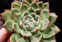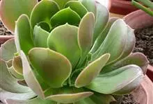 红缘莲花掌属蔷薇目、景天科植物,原产大西洋的加那利群岛。质厚,蓝绿色,被白霜,叶缘红褐色。聚伞花序,花浅黄色,有时带红晕。叶形叶色较美,有一定的观赏价值,多盆栽用于点缀室内;可放置于电视、电脑旁,…全部>>