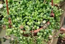珍珠吊兰因鼓鼓、饱满翠绿的椭圆形小叶子形似珍珠状而得名。又名翡翠珠、 佛珠吊兰、翡翠珠、绿之铃,绿铃。菊科千里光属多肉植物,花期一般是当年的12月至翌年1月。珍珠吊兰性喜富含有机质的、疏松肥沃的土壤。…全部>>