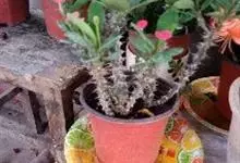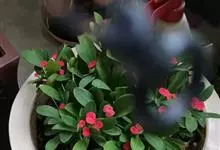 铁海棠为大戟科大戟属蔓生灌木植物;茎多分枝,具纵棱,呈旋转状;叶互生,通常集中于嫩枝上;每个花序基部边缘具微小的红色尖头;苞叶先端圆且具小尖头,无柄,上面鲜红色,下面淡红色;苞片丝状;子房光滑无毛,…全部>>