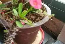 虎刺梅:别称铁海棠,是蔓生灌木植物。茎多分枝,长60-100厘米,直径5-10毫米,具纵棱,密生硬而尖的锥状刺,刺长1-1.5厘米,直径0.5-1.0 毫米,常呈3-5列排列于棱脊上,呈旋转。叶互生…全部>>