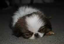 日本狆是极小型犬;被毛长而丰厚,不弯曲;毛色为白色底,带黑色或栗色斑块,斑块颜色越艳越好;斑块以在耳、身、面、尾根左右对称者为佳;头较大而圆,头骨平坦;吻短,鼻尖缩至两眼之间,几乎与眼同齐;眼大而凸出,…全部>>