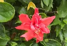 重瓣朱槿(酸醋花、月月开)锦葵目 > 锦葵科 > 木槿属 > 重瓣朱槿