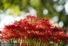 石蒜[学名:Lycoris radiata Herb.],是石蒜科石蒜属的多年生草本植物,别名彼岸花、红花石蒜、死人花、蟑螂花、龙爪花等。石蒜的叶狭带状,中间有粉绿色带,秋季出叶。伞形花序,花鲜红色。…全部>>