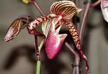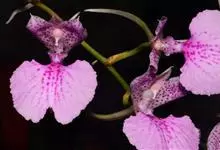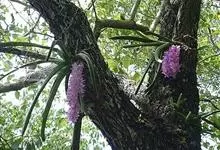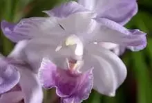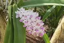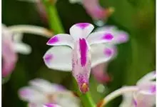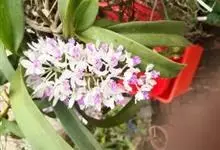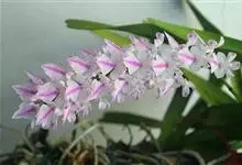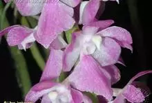 指甲兰是兰科指甲兰属植物。其茎粗壮;叶带状;总状花序疏生数朵花;萼片和花瓣淡白色,上部具紫红色;唇瓣侧裂片镰状长圆形;中裂片近宽卵形,前半部紫色,后半部白色带紫色斑点和条纹,先端凹缺,…全部>>