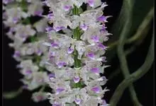 多花指甲兰是兰科、指甲兰属植物。茎粗壮,叶肉质。花序叶腋生,柄粗壮,轴较长,密生许多花;花苞片绿色,质地厚,卵状披针形;花梗和子房白色带淡紫色晕;子房棒状,…全部>>